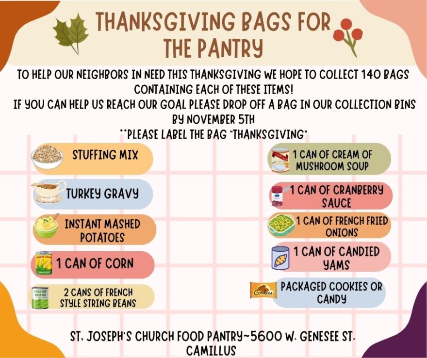 Maxwell is one of the dropoff sites for donations to St. Joseph’s Church Food Pantry. The Pantry asked us to share the following request: